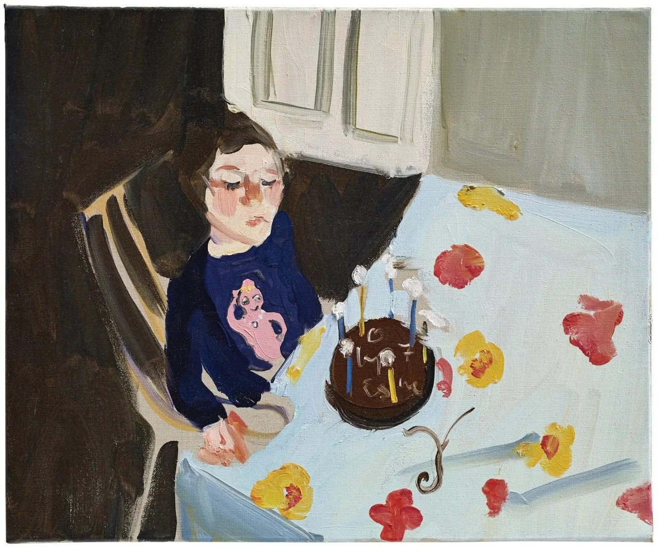 Chantal Joffe, Esme’s 7th birthday, an oil painting that the artist saw as a poignant reminder of her daughters solitude as an only child. Courtesy of the Victoria Miro Gallery, London