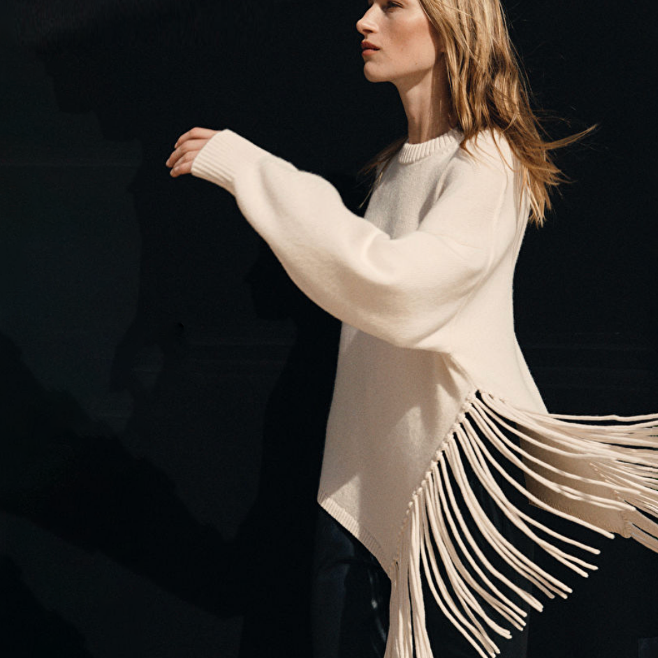 Fringed Asymmetric Knit