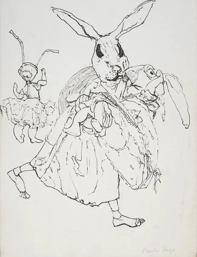 Every little detail counts. Rego’s lifetime of work is documented through her drawings in pen and ink, Conté, charcoal and pencil. Many are preliminary sketches for larger famous paintings like The Cadet and His Sister (1988), and all reveal her subversive humour as she portrays domesticity with all its ups and downs.