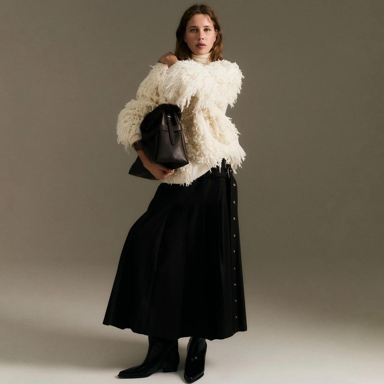 Find comfort in cosy mohair knits, lace trimmed skirts and teddy bear textures.