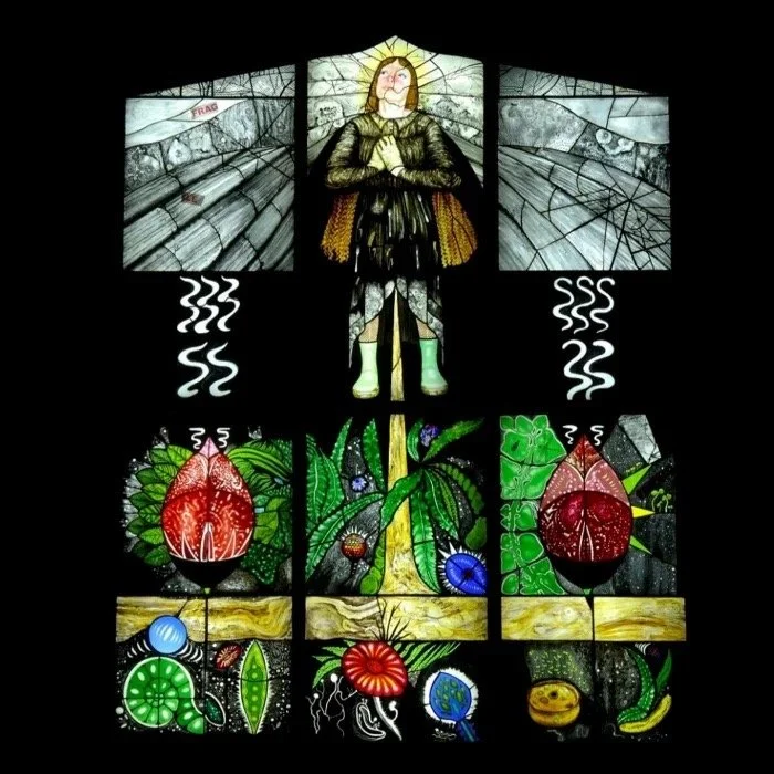 Inevitably it showcases stained glass from the past by artists like William Morris and Edward Burne-Jones but moves swiftly to the present, to names like Brian Clarke and the dynamic Pinkie Maclure, who personalised her stained glass saints with a humorous vibe.