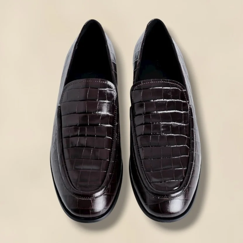 Croc-Effect Leather Loafers